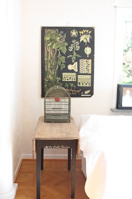 Vilket ljust o fint rum!! Ljuvlig skolplansch och fågelbur du har där!!